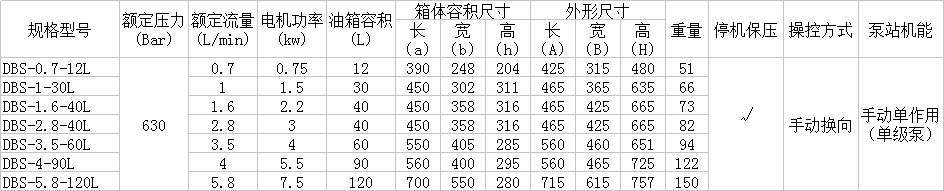 DBD選型參數表:
