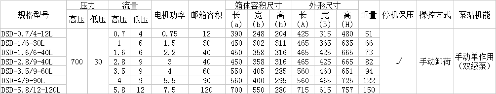 DSD選型參數表: